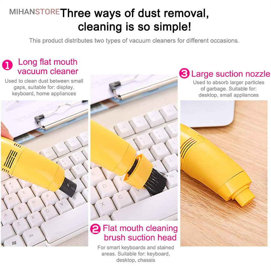 Computer Mini Vacuum یا همون جارو USB. با کمک این جارو کوچیک می تونید گرد و غبار بین کلید های کیبورد یا منافذ خاک گرفته کامپیوتر و یا مانیتور رو تمیز کنید. از اون جایی که بدون باتری و با کابل USB کار میکنه خیلی انتظار مکش قوی نداشته باشید چون فقط برای جمع آوری گرد و غبار مناسبه.  دو تا سری متفاوت هم داره که یکیش از پلاستیک نرم و انعطاف پذیره تا به راحتی جاهایی مثل بین کلید های کیبورد رو تمیز کنه و سری دیگه هم که دارای برس هست می تونه به جمع آوری تکه های بزرگتر کمک کنه.